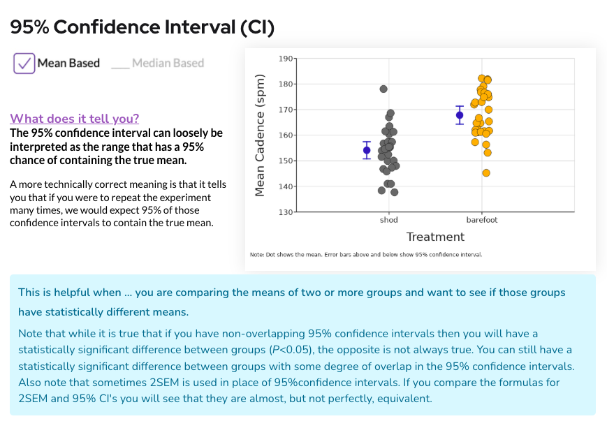 standard error of the mean and 95% confidence intervals.