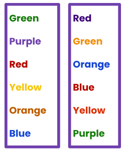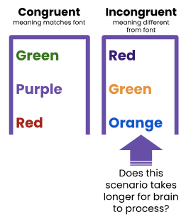 Try reading out loud the words written on the left and then try it on the right. Notice a difference? Did you find yourself taking longer to say words on one of the sides? If so, you weren’t alone in feeling impeded due to the Stroop effect!